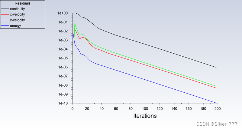 对于自然对流问题,格拉晓夫数小于10^(-7)可按照层流问题计算,因此这是一个二维稳态层流流动问题。求解器选择Fluent中的Pressure-Based求解器,是基于压力法的求解器,使用的是压力修正算法,求解的控制方程是标量形式的,擅长求解不可压缩流体。方程离散格式设置中,对流项的离散选取二阶迎风离散格式,扩散项的离散选择基于单元体的最小二乘法插值,压力项选取二阶离散格式。求解残差值设置为1e-6。