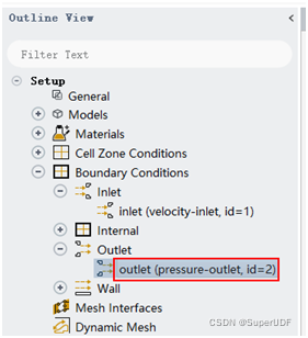 Lookup_Thread(Domain*domain, int id)其中id是 边界 面的ID或者cell区域的ID,如下图中outlet边界的ID是2。