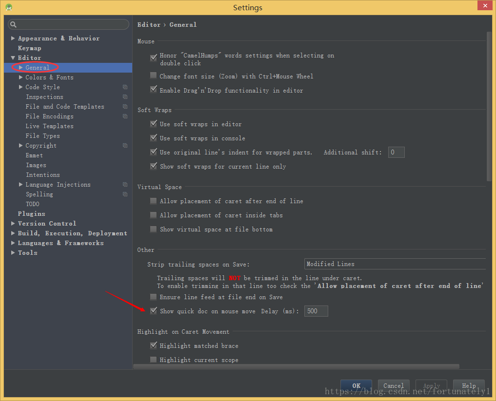 Show quick doc on mouse move Delay(ms) 打上勾就好了,还可以修改自动出现提示的时间。