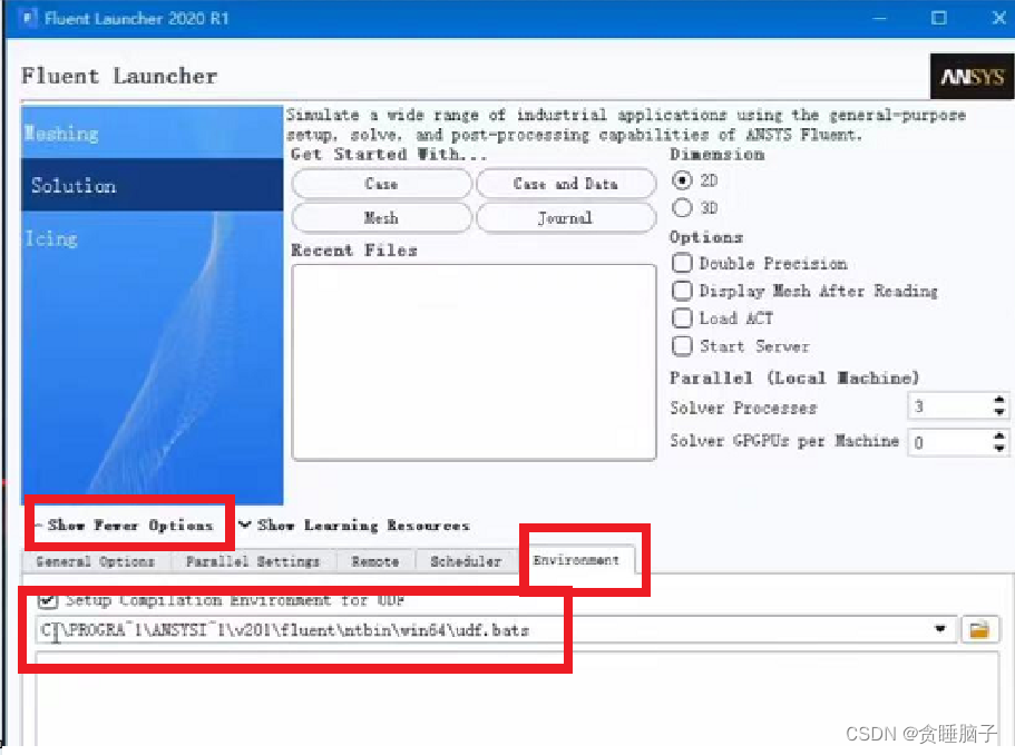 打开 fluent ——show fewer options——environment——按照自动生成的udf文件位置打开该文件。