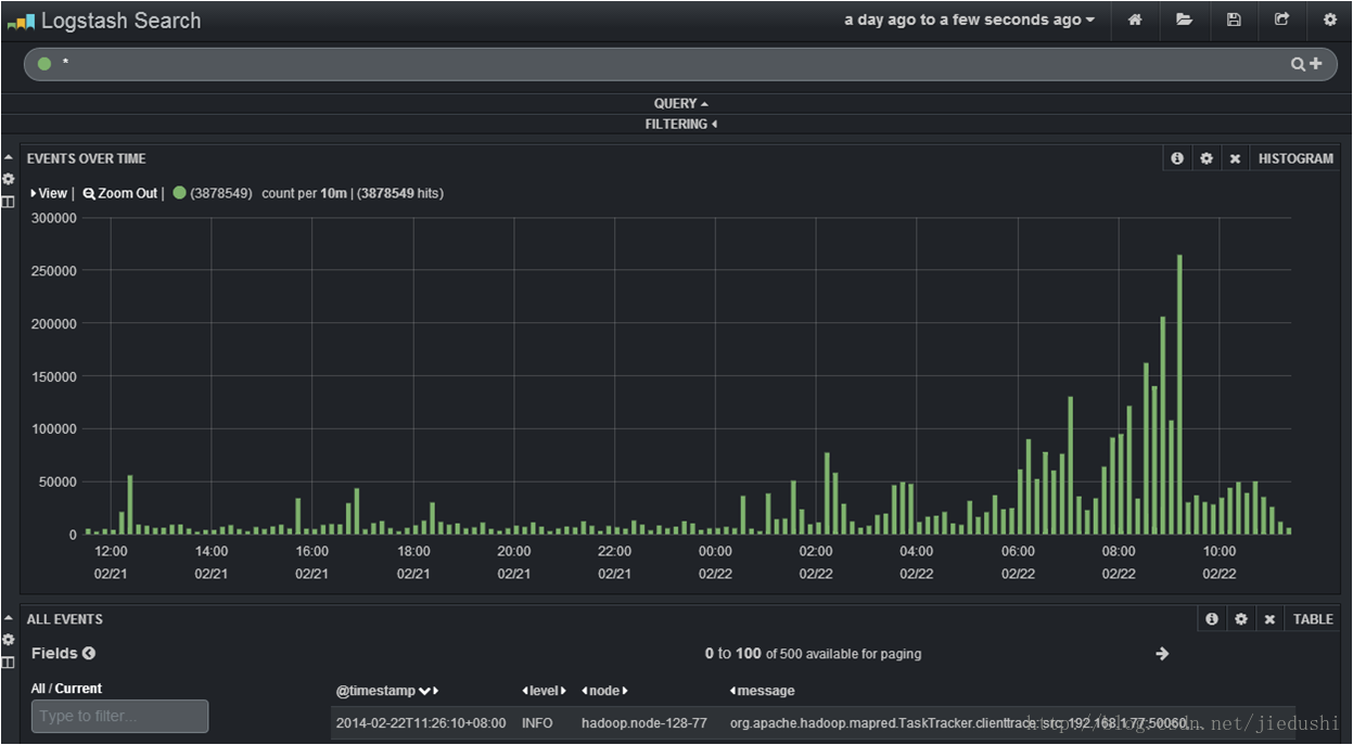 你将发现Logstash可以足够灵巧的在Elasticsearch上建立索引... 每天会按照默认格式是logstash-YYYY.MM.DD来建立索引。在午夜(GMT),Logstash自动按照时间戳更新索引。我们可以根据追溯多长时间的数据作为依据来制定保持多少数据,当然你也可以把比较老的数据迁移到其他的地方(重新索引)来方便查询,此外如果仅仅是简单的删除一段时间数据我们可以使用Elasticsearch Curator。