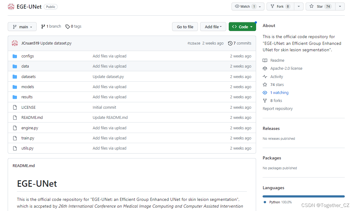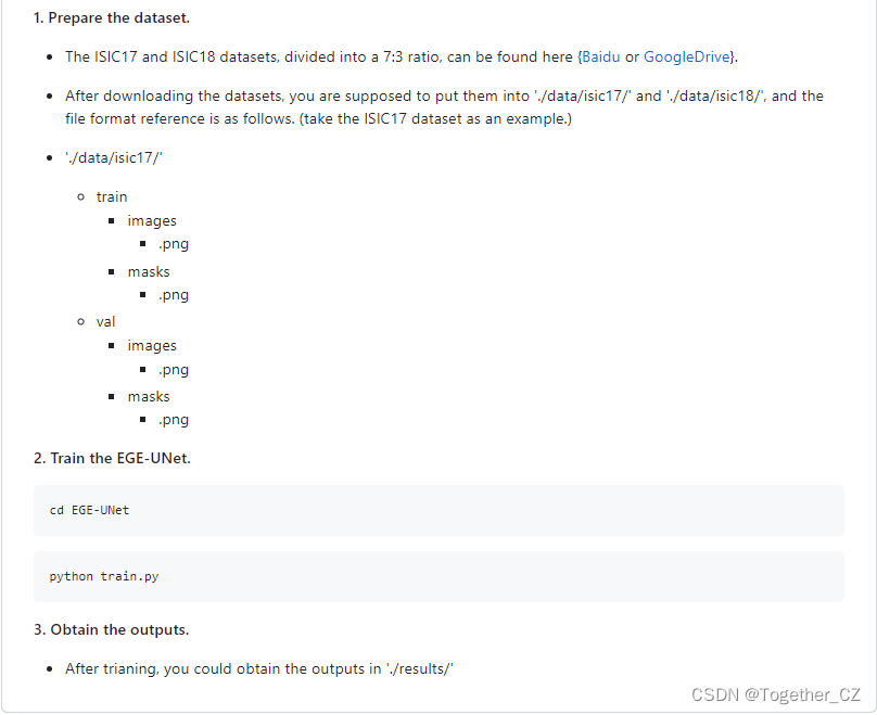 可以看到:作者同时提供了两组数据集,项目源码默认使用的是isic2017的数据集的。
