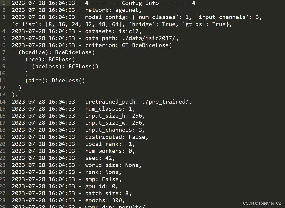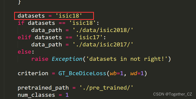 到这里基本完整的实践就结束了,前面也说过了源码默认使用的是isic2017的数据集,所以后面我又考虑基于isic2018的数据集也开发训练一下模型,只需要修改configs目录下的参数即可,如下所示: