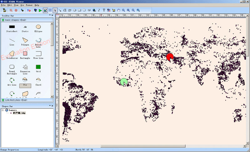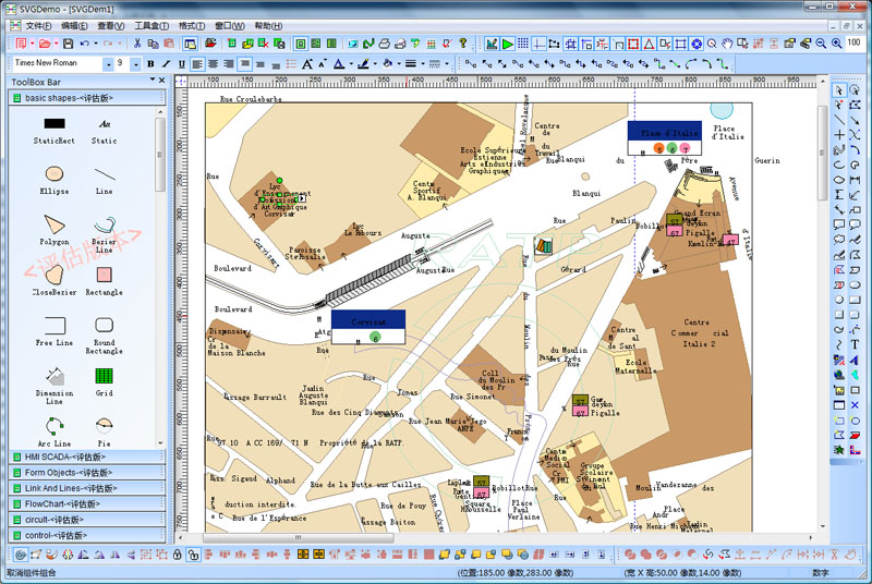 2014版本提供了全新的直接在GIS矢量地图上进行组态功能,您可以打开任意ArcGIS的地图作为背景,然后在此基础上进行组态。如下图: