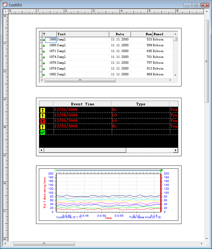 13. 可将任何Windows控件放入画布,系统提供了列表控件、网格控件和实时曲线等控件: