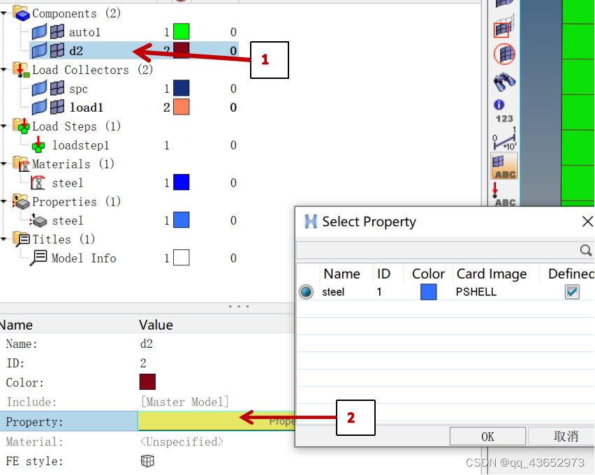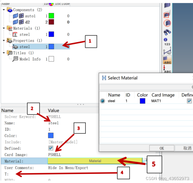 5.3定义类型。以上是壳单元要定义厚度T。如果是体单元选择Psolid、梁选择Pbar等。