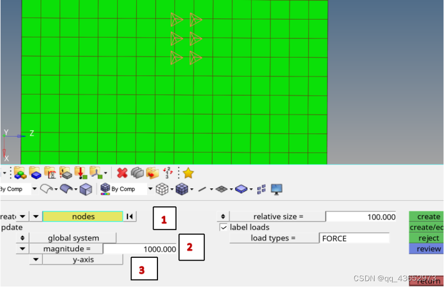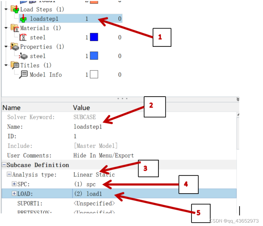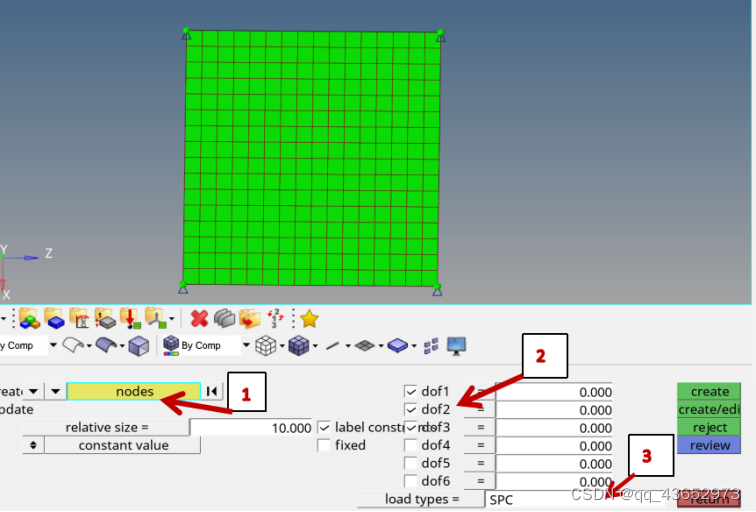 9.4在约束SPC中添加第8步创建的约束。9.5在LOAD中选择第8步创建的载荷。