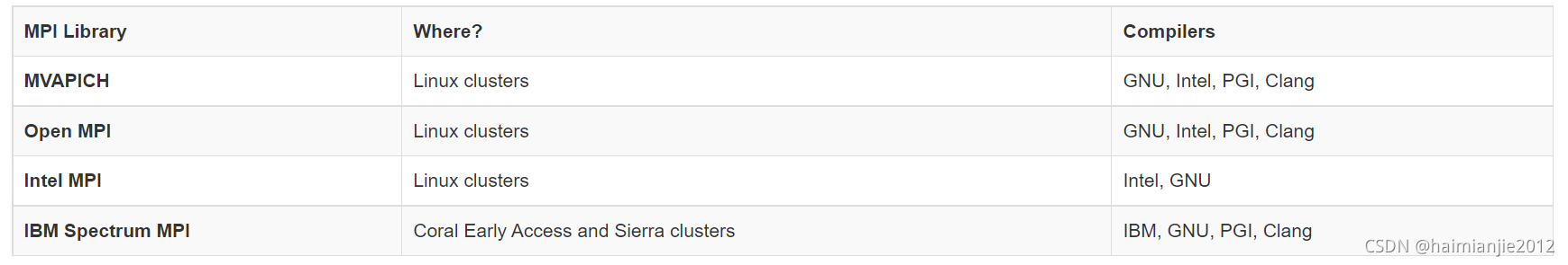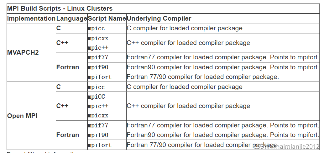 以下各节将简要讨论每个MPI库,包括指向其他详细信息的 链接