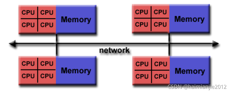 随着体系结构趋势的改变,共享内存SMP通过网络进行组合,从而创建混合分布式内存/共享内存系统。
