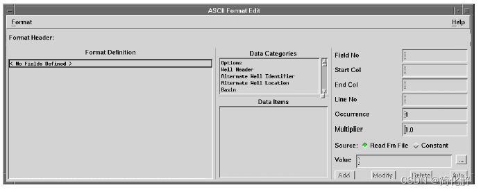 在ASCII format edit窗口的Data Categorfy中选well header (图4) ,在Data Items中选