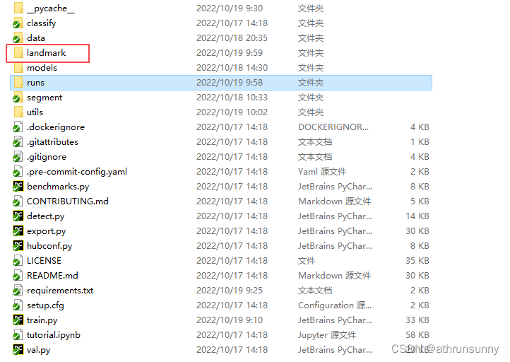 克隆下最新的yolov5,在根目录下创建landmark文件夹