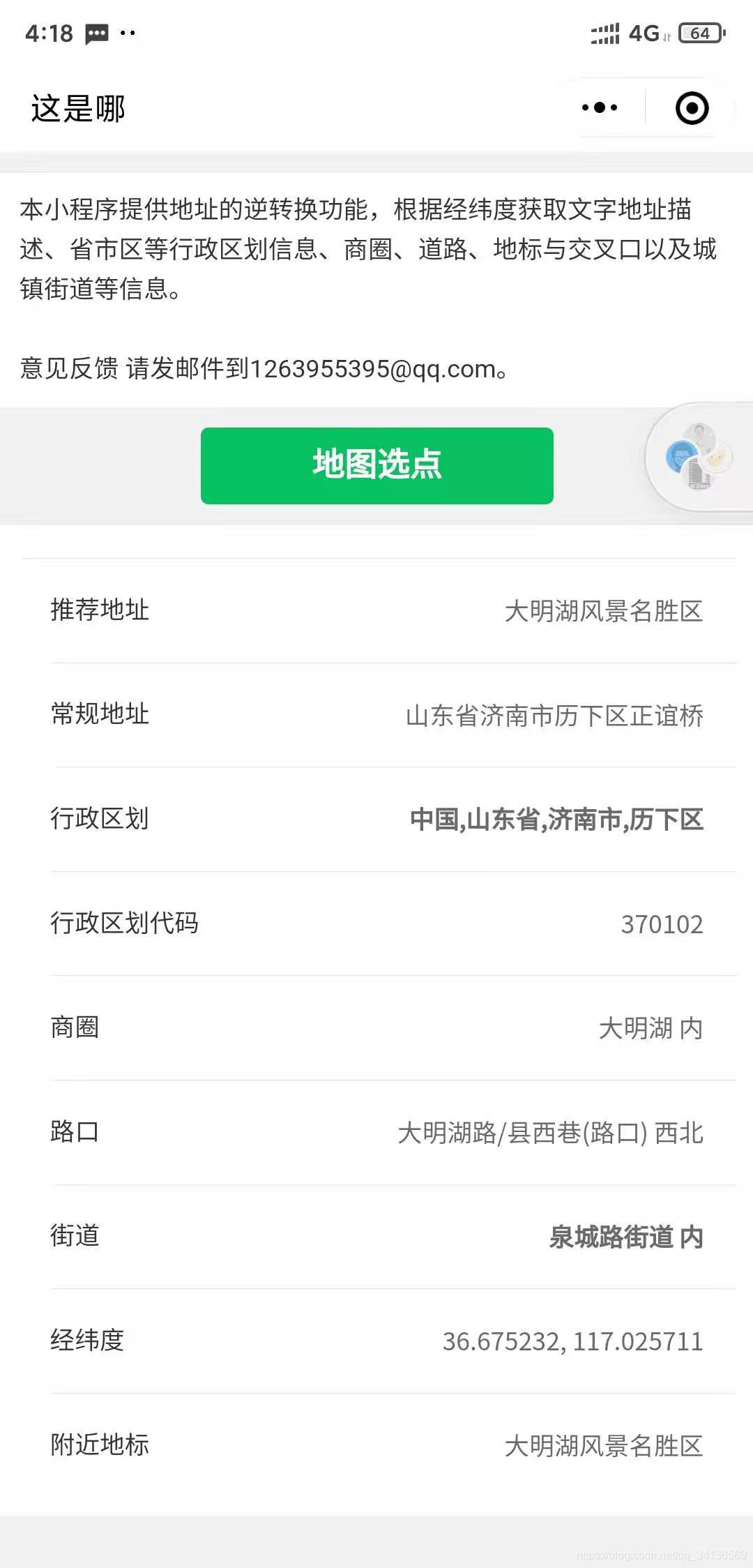 用户选点后返回经纬度,使用逆地址解析接口进行解析。