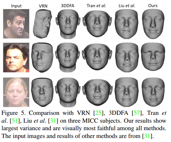 最后作者比较了在各种方法的人脸重建结果,自己提出的方法更优。
