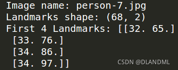我们数据集的样本将以字典的形式保存{'image':image,'landmarks':landmarks}