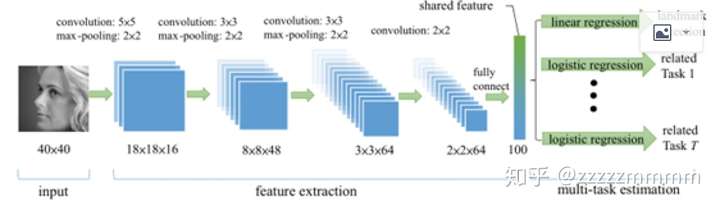 优点是快和多任务,不仅使用简单的端到端的人脸关键点检测方法,而且能够做到去分辨人脸的喜悦、悲伤、愤怒等分类标签属性,这样跟文章的标题或者说是文章的主题贴合——多任务。