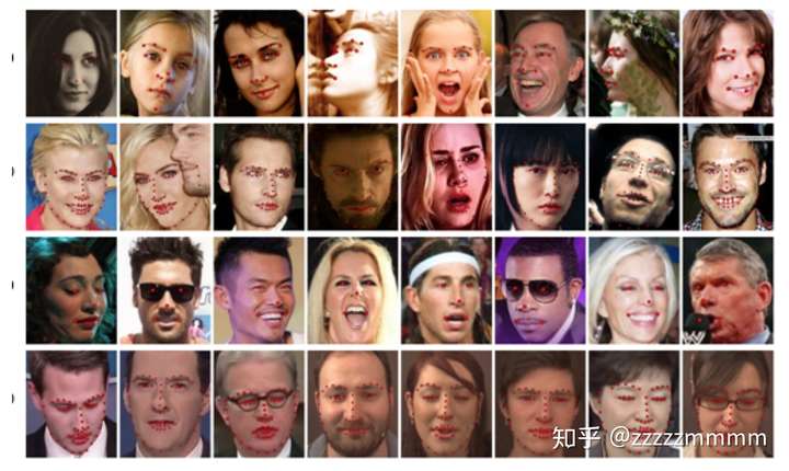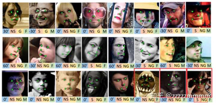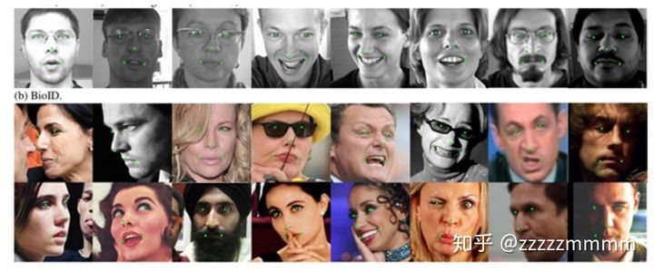 从图上可发现,每一个簇的样本反应了头部的某种姿态,甚至出现了表情和性别的差异。因此可推知,人脸关键点的位置常常和人脸的属性相关联。因此为了得到更准确的关键点定位,作者使用具有相似特征的图片训练对应的回归器,最终在人脸关键点检测数据集 AFLW,AFW 和 300W 上均获得当时最佳效果。