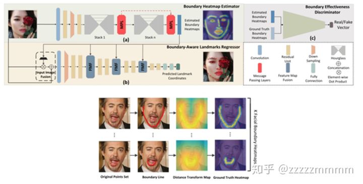 直接对关键点进行预测会存在过拟合问题,特别是对一些具有具有扭曲表情,夸张表情,遮挡表情的人脸关键点检测使用现有的算法是非常不准确的。为了更好地解决这个问题,这篇文章提出了使用boundary边界的检测方法融合人脸关键点检测方法,使得人脸关键点检测更加精准(特殊情况下),在论文实验部分给出的精确度进步并不是很大。