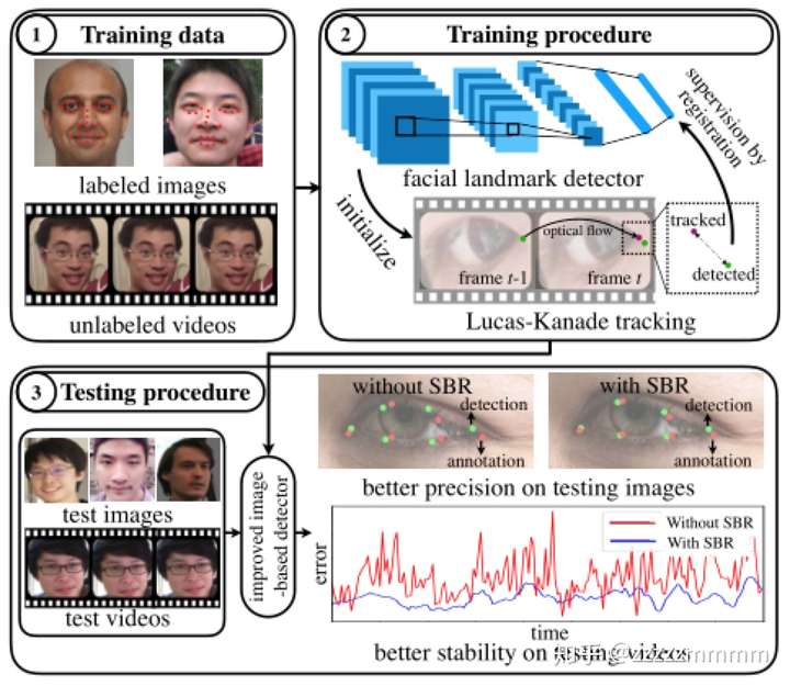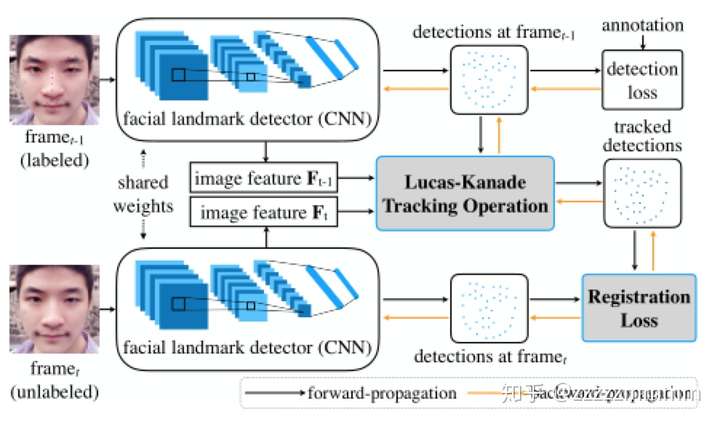 这篇文章一开始看标题觉得非常有意思,通过非监督学习去提升人脸检测关键点的精确率,非监督学习?just kidding?后来细看了一下,确实有意思的是使用CNN模型去检测人脸关键点位置,然后使用光流(flow tracking)跟踪视频流的下一帧图片人脸关键点位置作为融合信息给CNN检测器去作为人脸关键点的辅助信息。