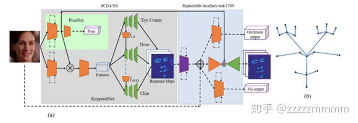 提出一个Pose Conditioned Dendritic Convolution Neu-ral Network (PCD-CNN)网络。这个网络从原理来看效果不会太好,会存在漂移问题,因为根据heatmap会存在较粗的定位,但是最后(b)阶段引入了Proposed dendritic structure进行弥补,可是这种弥补方式是根据数学公式进行结构特征点计算的方式能否真正地减少误差读者抱着一定的疑惑,如果是基于检索的方式或者搜图的方式可能会效果更好。