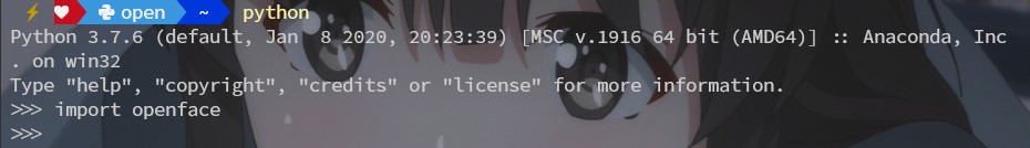 安装完之后,可以在控制台中,进入python环境,然后导入openface的包看是否报错