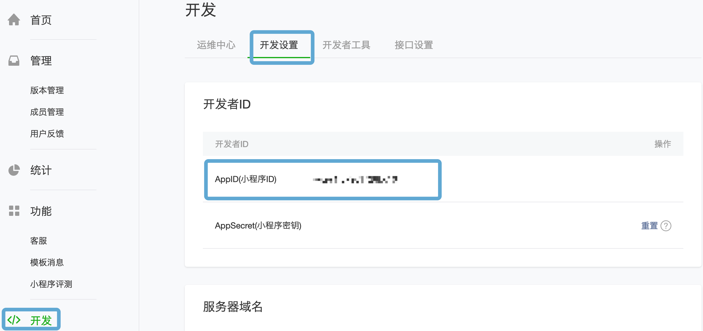 开发-开发设置-开发者ID-AppID(小程序ID)