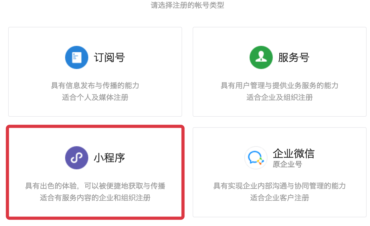 选择微信小程序填写信息激活即可(开发者们注册个人即可)