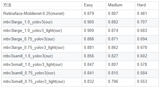 在wider face val精度(单尺度输入分辨率:640*480)