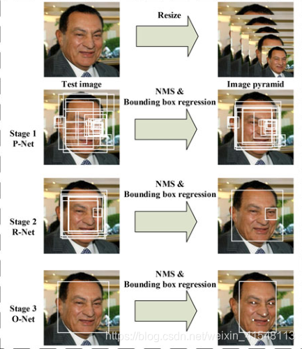 起初:先对图像做了multi scale的resize,构成了图像金字塔,然后这些不同scale的图像作为stage1的输入进行训练,目的是为了可以检测不同scale的人脸。