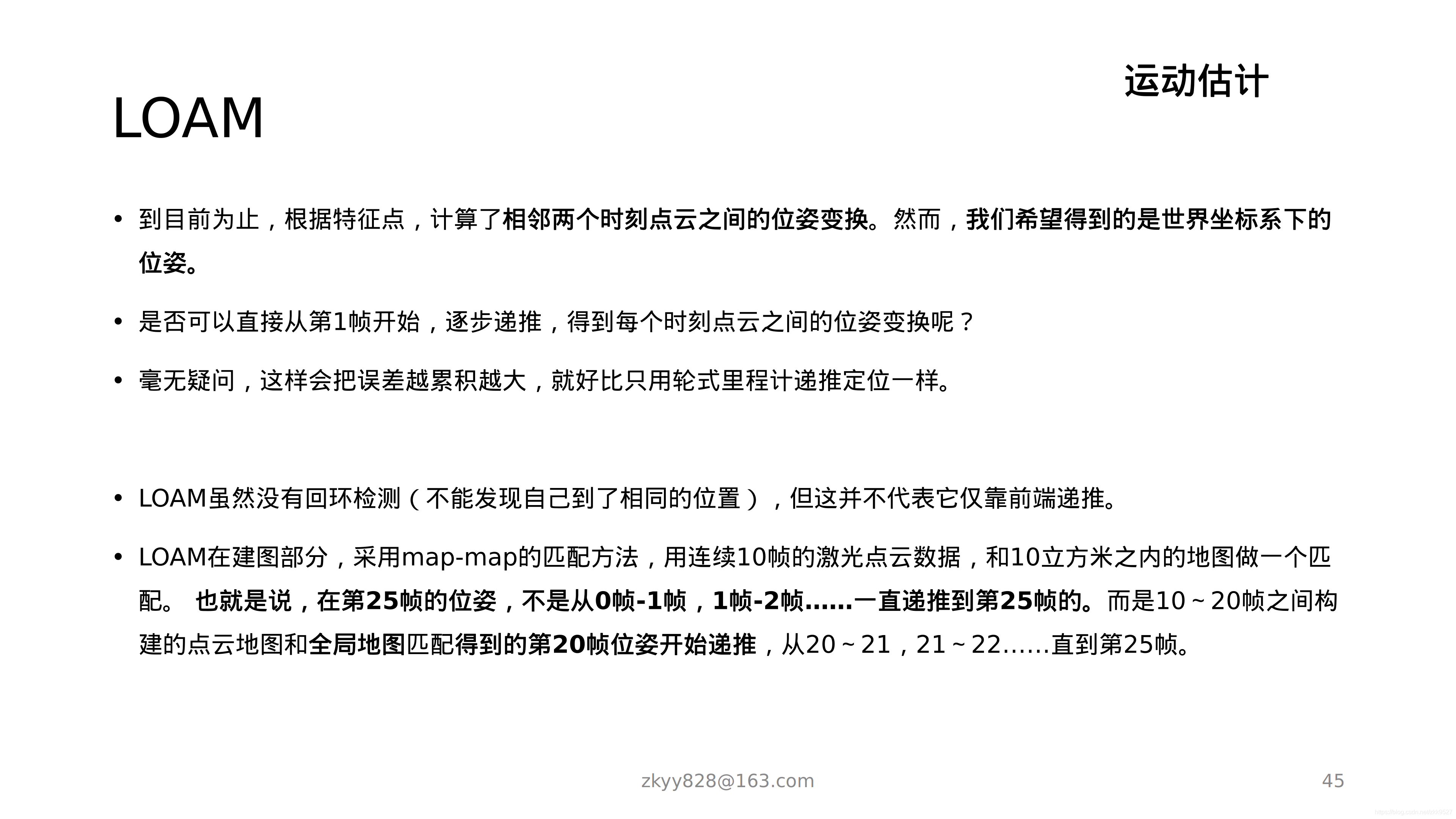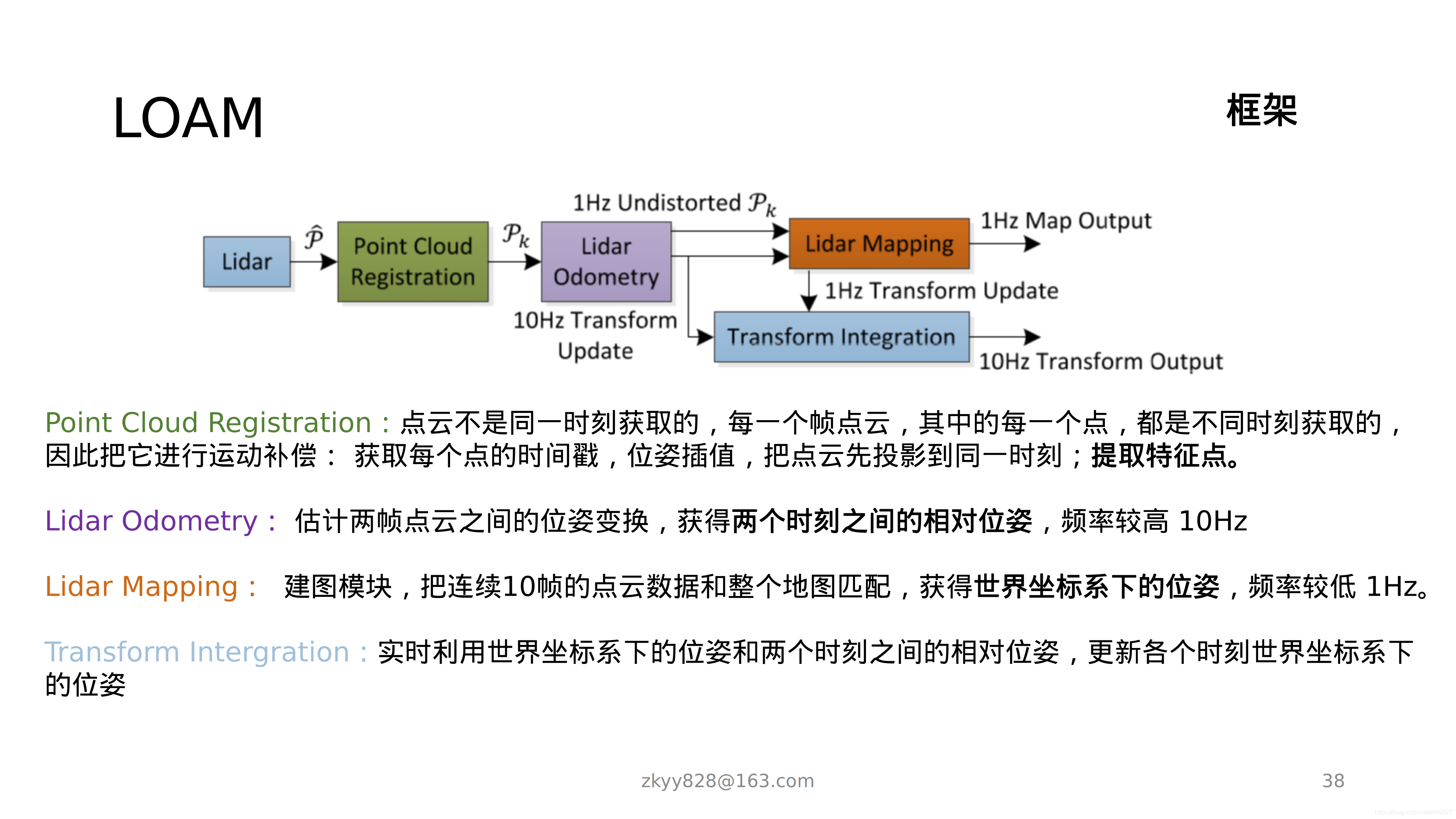 Point Cloud Registration:点云不是同一时刻获取的,每一个帧点云,其中的每一个点,都是不同时刻获取的,因此把它进行运动补偿: 获取每个点的时间戳,位姿插值,把点云先投影到同一时刻;提取特征点。
