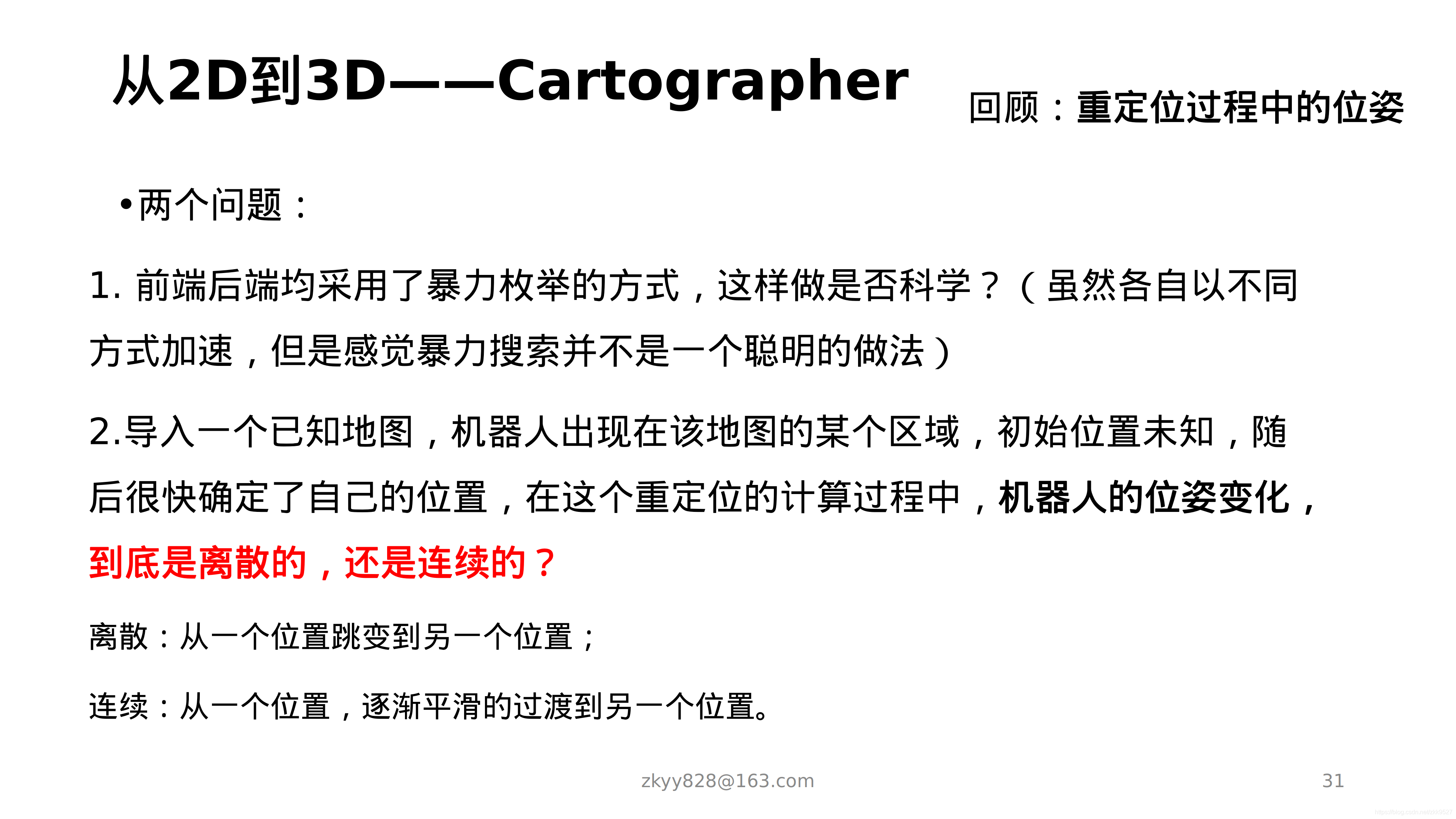 2.导入一个已知地图,机器人出现在该地图的某个区域,初始位置未知,随后很快确定了自己的位置,在这个重定位的计算过程中,机器人的位姿变化,到底是离散的,还是连续的?