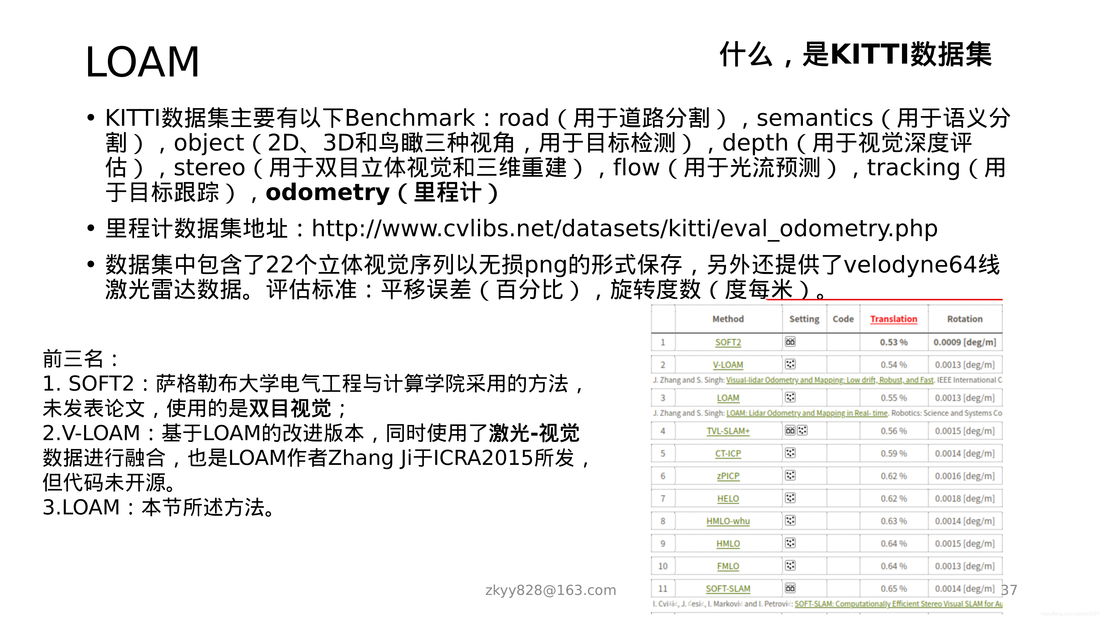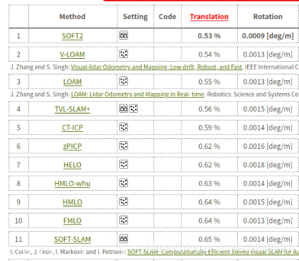 那么,代码少,时间老,就证明它不行吗?作为一个7年前的算法,至今在自动驾驶数据集KITTI上的Odometry模块的激光SLAM排行榜上,仍然霸占榜一。