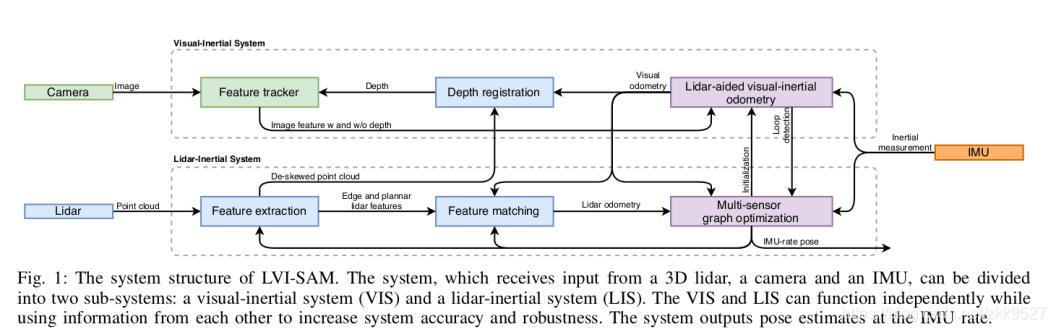 LVI-SAM使用了两个子系统,视觉惯性系统(VIS)和雷达惯性系统(LIS):