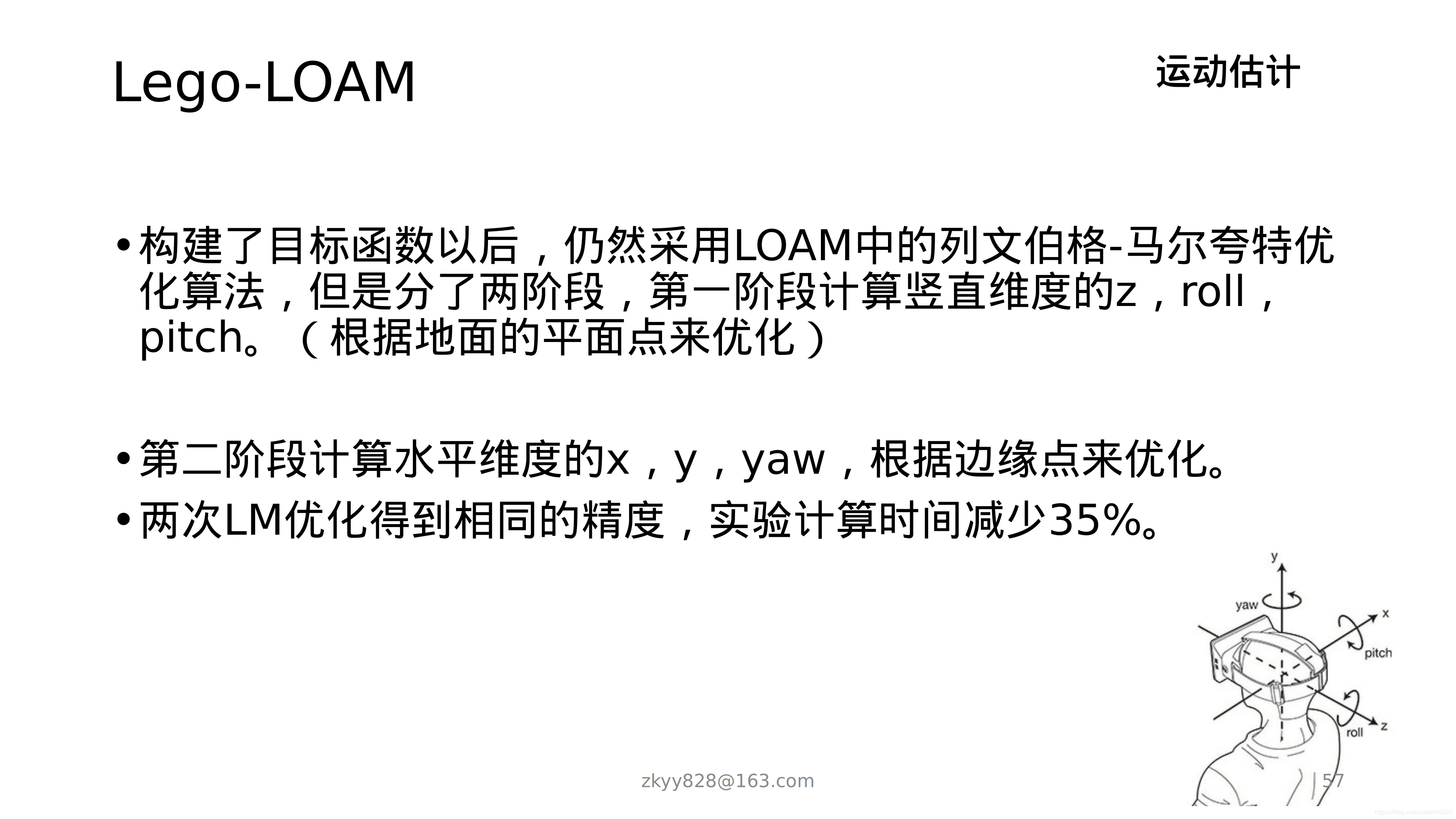 第二阶段计算水平维度的x,y,yaw,根据边缘点来优化。 两次LM优化得到相同的精度,实验计算时间减少35%。