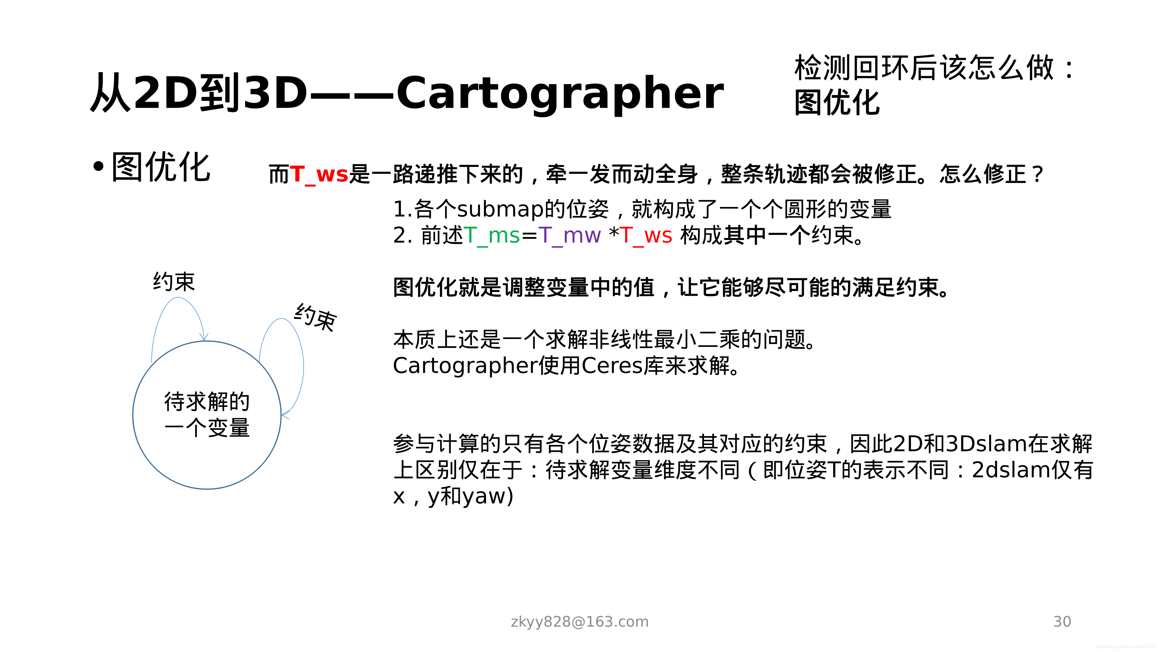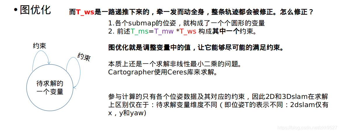 确定回环之后,之后的优化内容则依旧是利用图优化方法,建立约束,优化各个位姿节点。 注意:用到的库为Ceres(和Cartographer、LOAM相同。LOAM的续作均为因子图优化库gtsam)