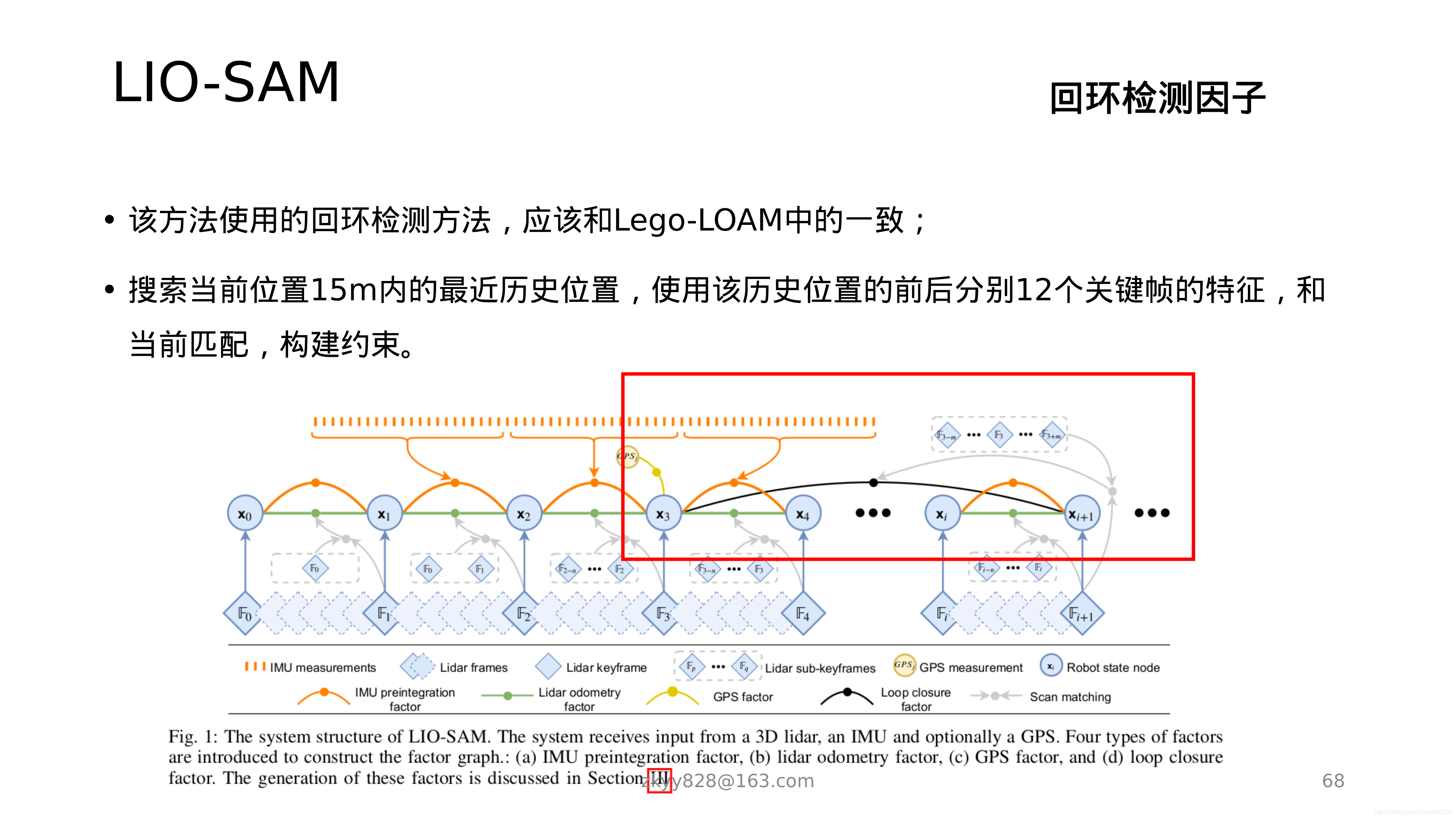 该方法使用的回环检测方法,应该和Lego-LOAM中的一致; 搜索当前位置15m内的最近历史位置,使用该历史位置的前后分别12个关键帧的特征,和当前匹配,构建约束。