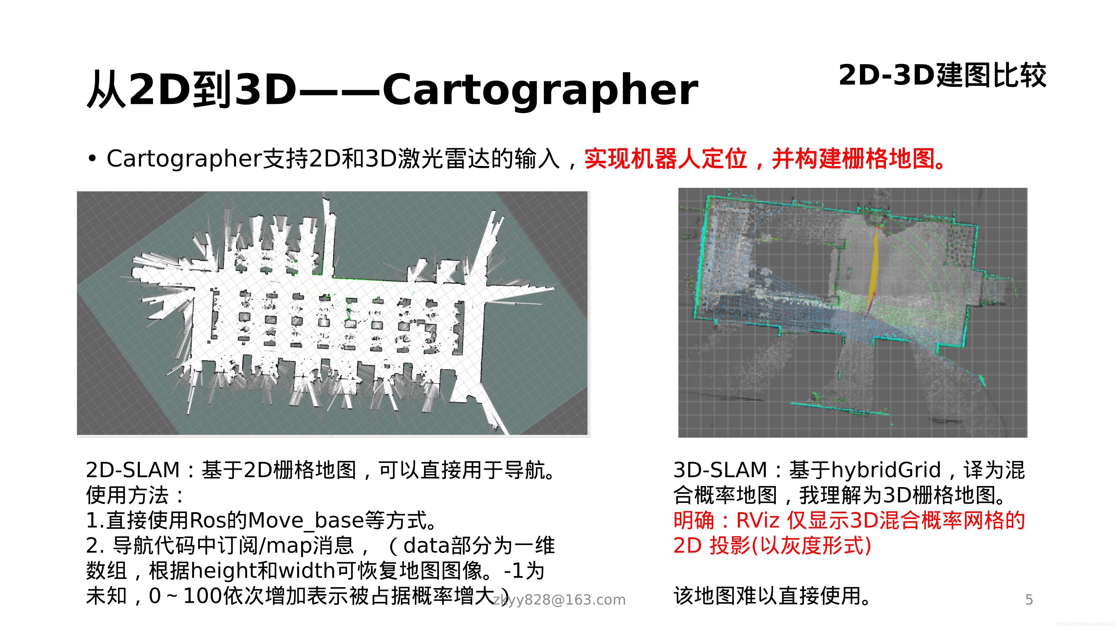 Cartographer支持2D和3D激 光 雷达的输入,实现机器人定位,并构建栅格地图。