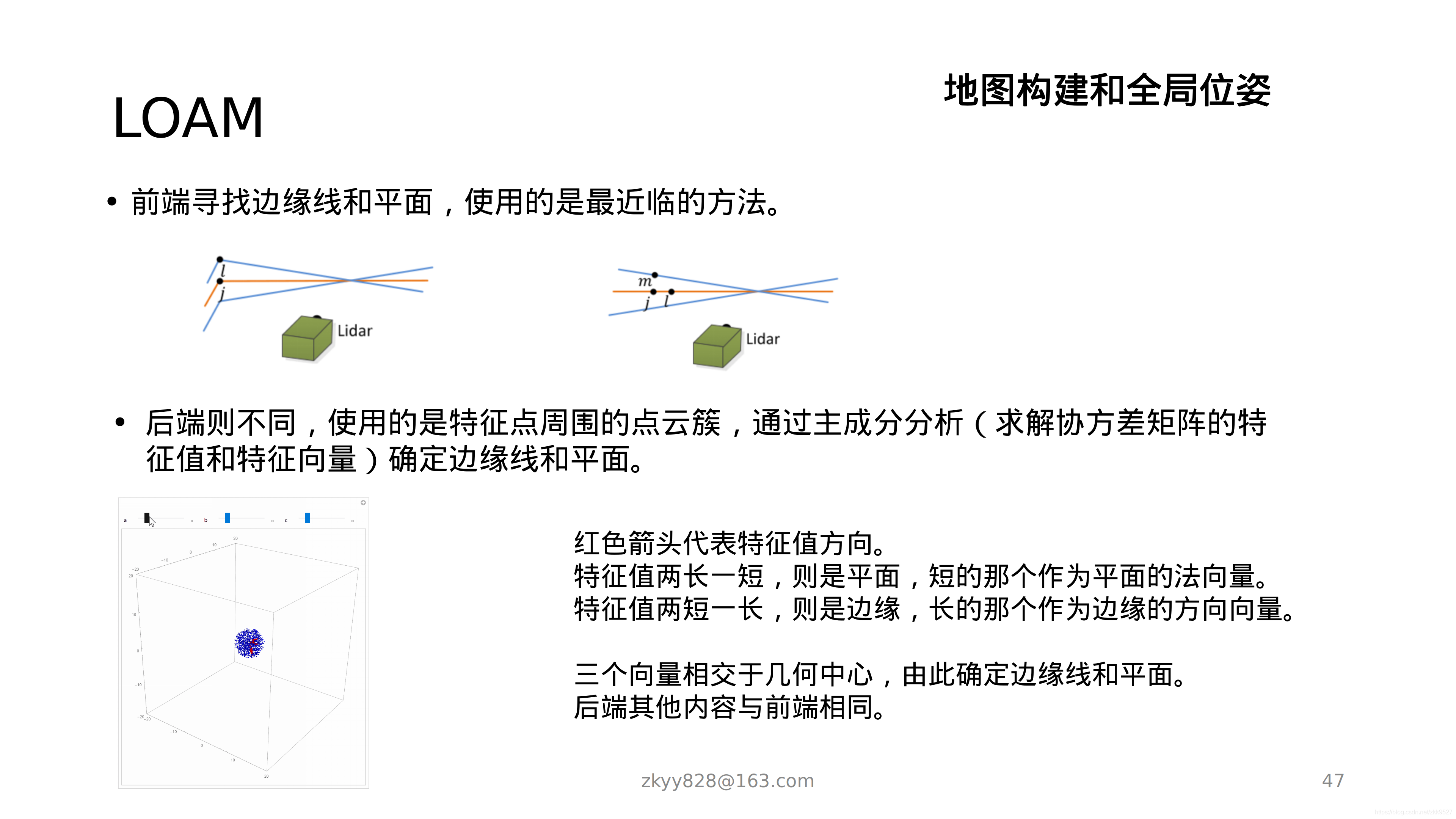 计算位姿的目标函数,与LOAM中的一致,为点到线的距离(从边缘点中选点),点到面的距离(从平面点中选点),也采用协方差矩阵特征值的方式,提取边缘线和平面。