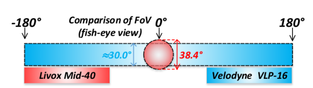 右图为固态雷达和多线雷达的视野对比。其实多线雷达也不是一条线一条线挨个扫的,看看velodyne的说明书就知道,它是上下跳着扫的,可能因为一些工艺的原因吧。这点我不是专业人士,我就不乱讲了。