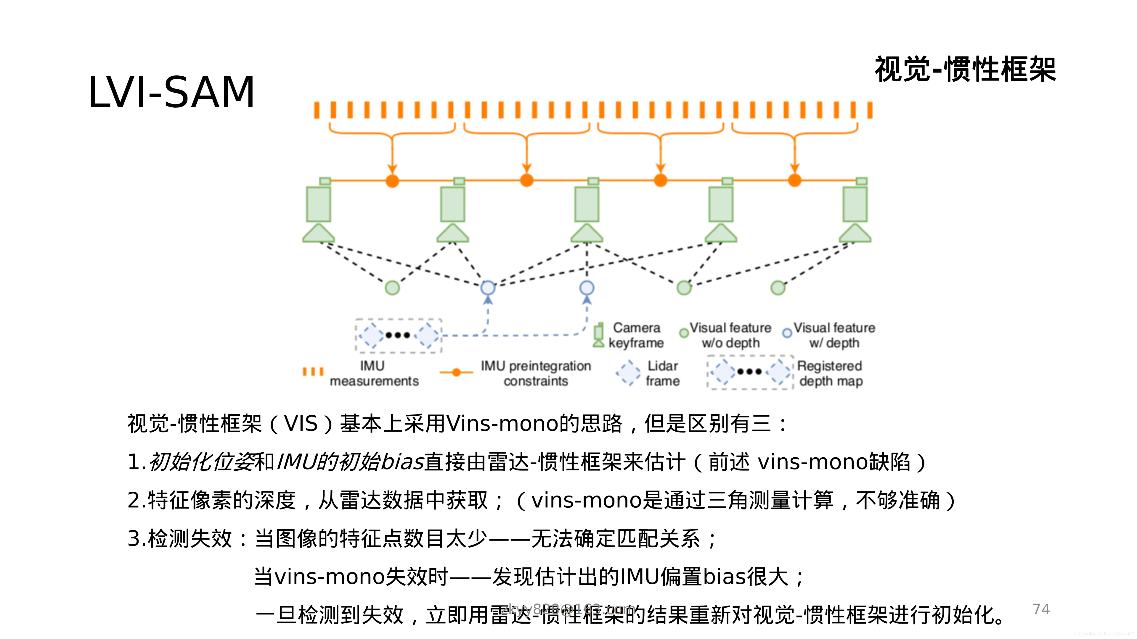 视觉-惯性框架(VIS)基本上采用Vins-mono的思路,但是区别有三: