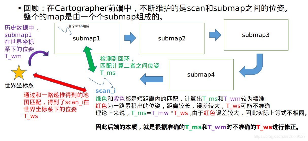 回顾:在Cartographer前端中,不断维护的是scan和submap之间的位姿。整个的map是由一个个submap组成的。