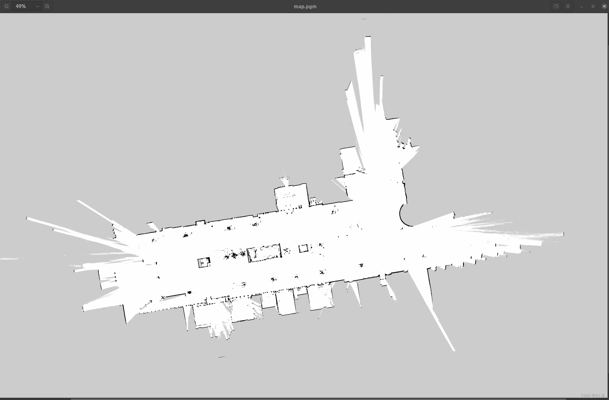 而我们可以发现其实地图还是稍微有点变化的,这对于导航是不利的,因此我们可以通过map_server,把已建立的地图加载出来,通过map的话题发布出来即可