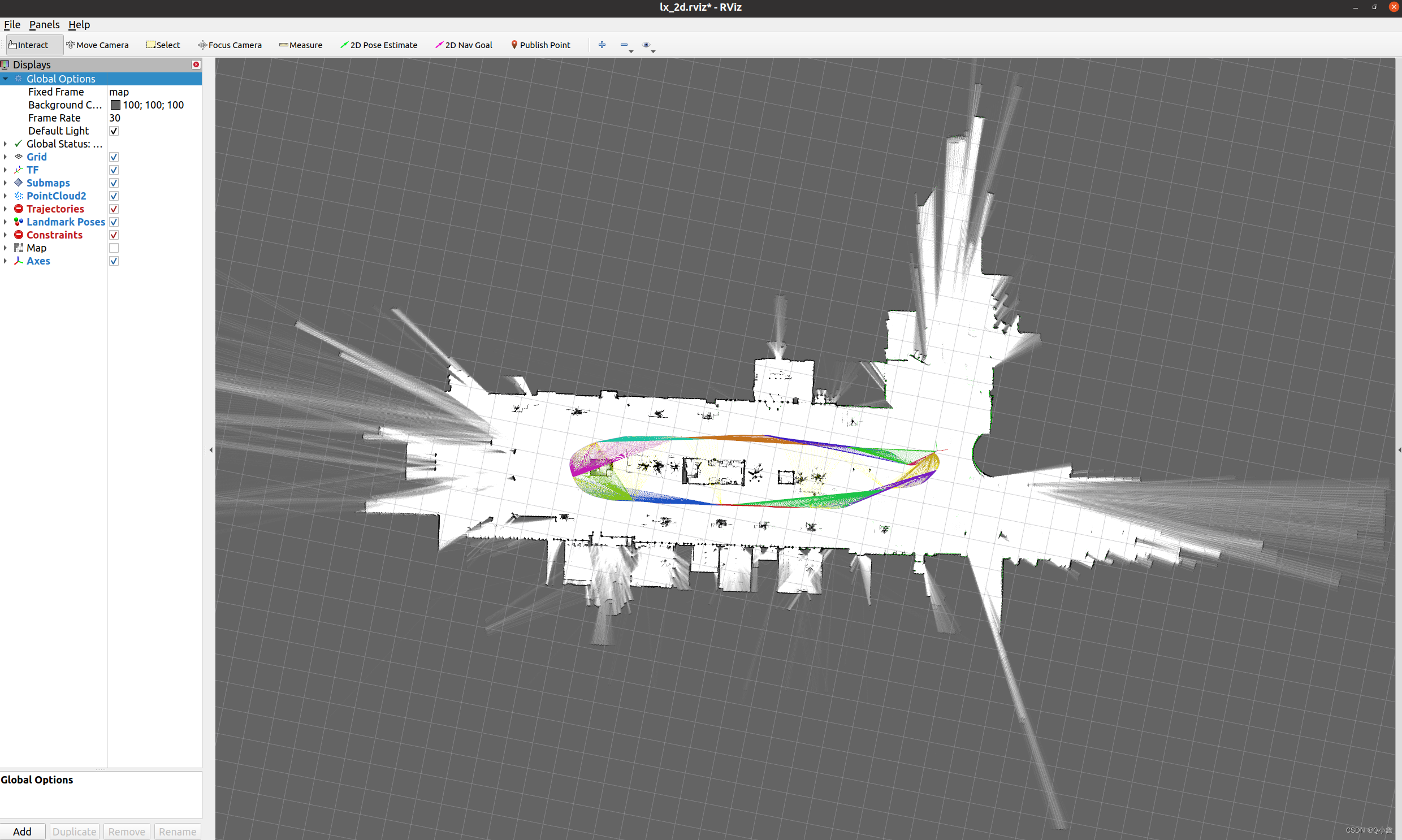 以上的建图使用的Submaps进行查看,也可以用map进行查看: