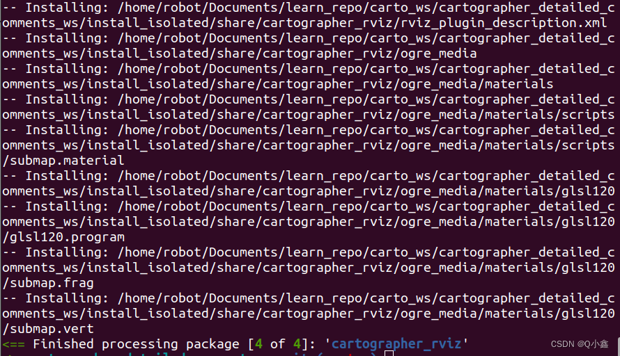 当不需要修改cartographer源码的时候,可以直接把cartographer_ros 放在工作空间进行catkin_make编译(因为cartographer源码已经安装到系统里,作为一个安装库)