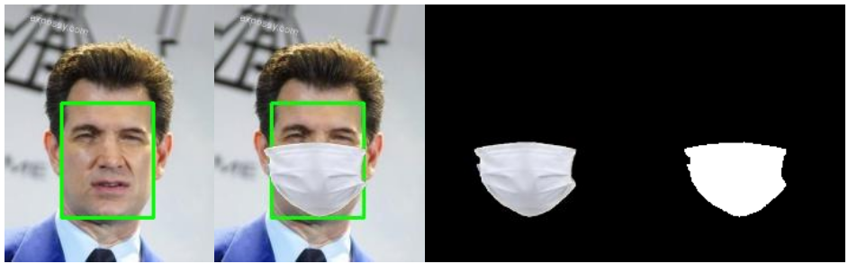 #!/usr/bin/env python# -*- coding: utf-8 -*-# @Author : 2014Veeimport osimport numpy as npfrom PIL import Image, ImageFile __version__ = '0.3.0' IMAGE_DIR = os.path.dirname('E:/play/FaceMask_CelebA-master/facemask_image/')WHITE_IMAGE_PATH = os.path.join(IMAGE_DIR, 'front_14.png')BLUE_IMAGE_PATH = os.path.join(IMAGE_DIR, 'front_14.png')SAVE_PATH = os.path.dirname('E:/play/FaceMask_CelebA-master/save/synthesis/')SAVE_PATH2 = os.path.dirname('E:/play/FaceMask_CelebA-master/save/masks/') class FaceMasker: KEY_FACIAL_FEATURES = ('nose_bridge', 'chin') def __init__(self, face_path, mask_path, white_mask_path, save_path, save_path2, model='hog'): self.face_path = face_path self.mask_path = mask_path self.save_path = save_path self.save_path2 = save_path2 self.white_mask_path = white_mask_path self.model = model self._face_img: ImageFile = None self._black_face_img = None self._mask_img: ImageFile = None self._white_mask_img = None def mask(self): import face_recognition face_image_np = face_recognition.load_image_file(self.face_path) face_locations = face_recognition.face_locations(face_image_np, model=self.model) face_landmarks = face_recognition.face_landmarks(face_image_np, face_locations) self._face_img = I