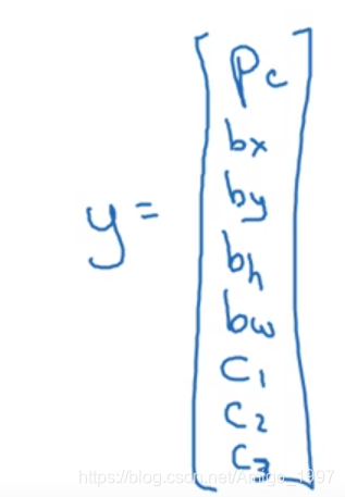 Pc表示图片中是否有检测的目标,bx,by,bw,bh(边界框的位置),C1, C2, C3表示属于哪一类(如1,0,0)