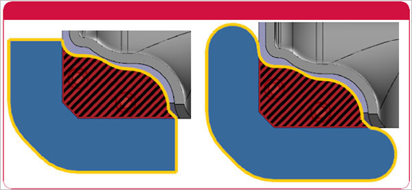为2D动态铣削,面积铣削或动态铣削刀具路径选择图形时,可以使用新的“自动区域”选择根据所选的图形自动创建“加工”,“空切”或“避让”区域。
