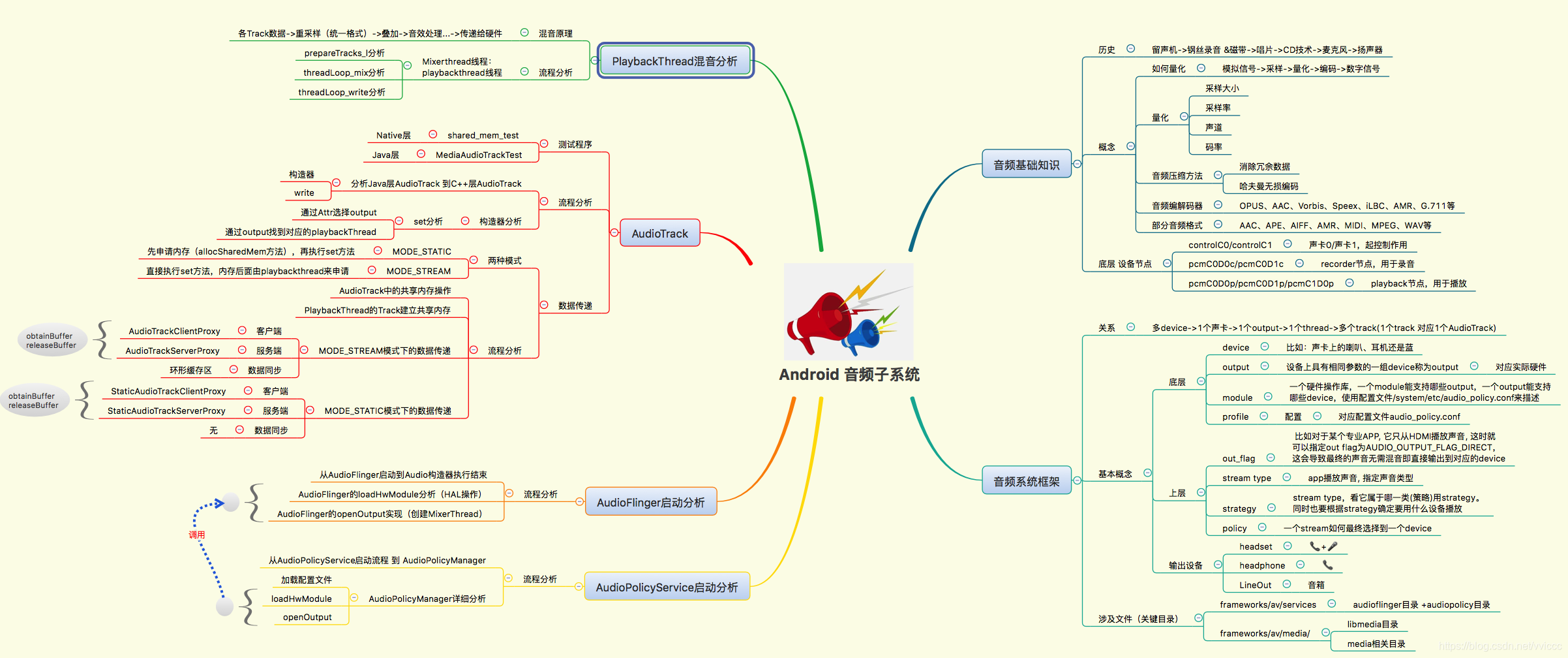 本章节主要关注➕ 以上思维导图左上 PlaybackThread分析 部分 即可。主要是对混音的原理和混音流程进行了分析。