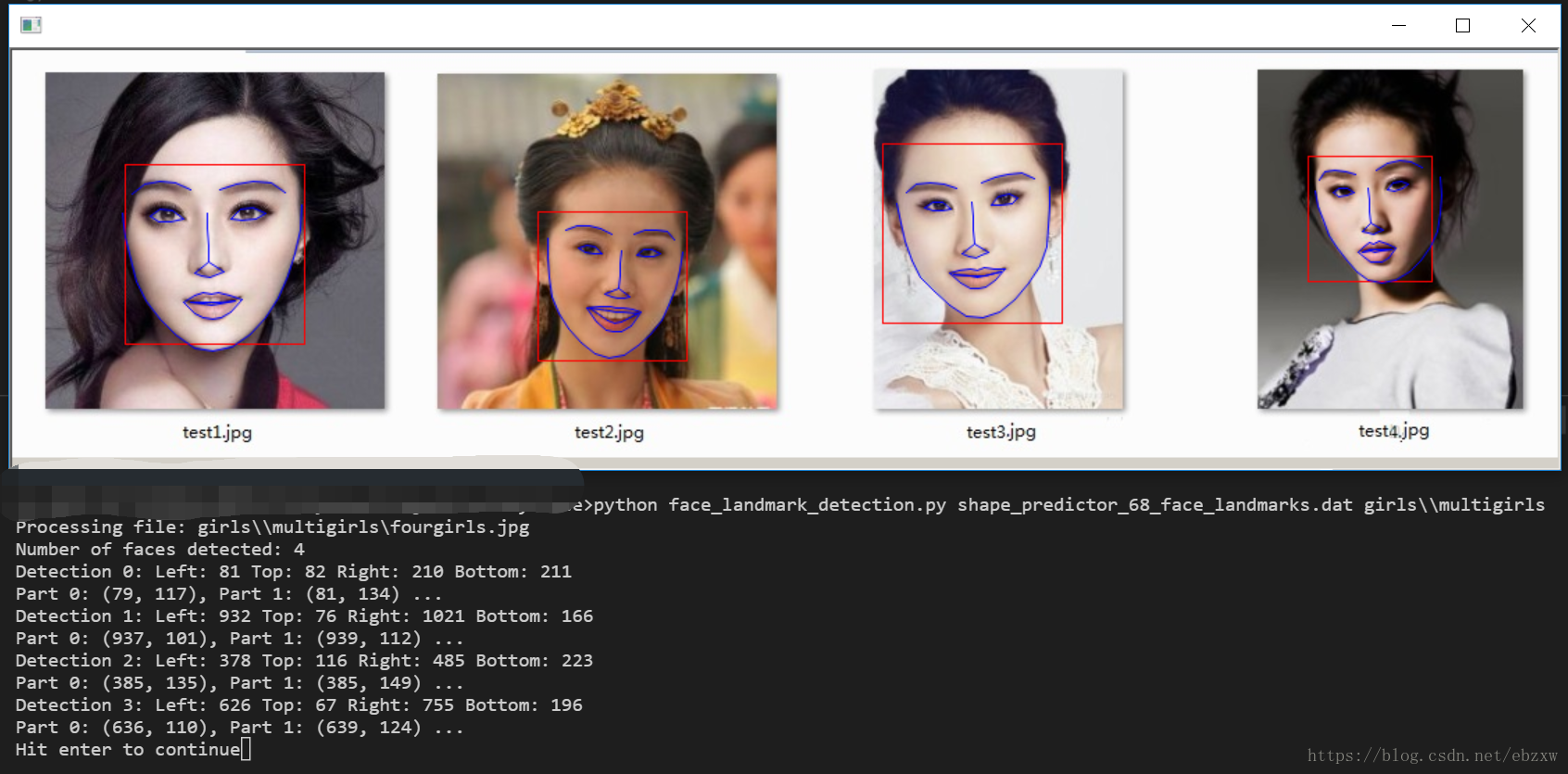 2)python face_landmark_detection.py shape_predictor_68_face_landmarks.dat girls\\multigirls