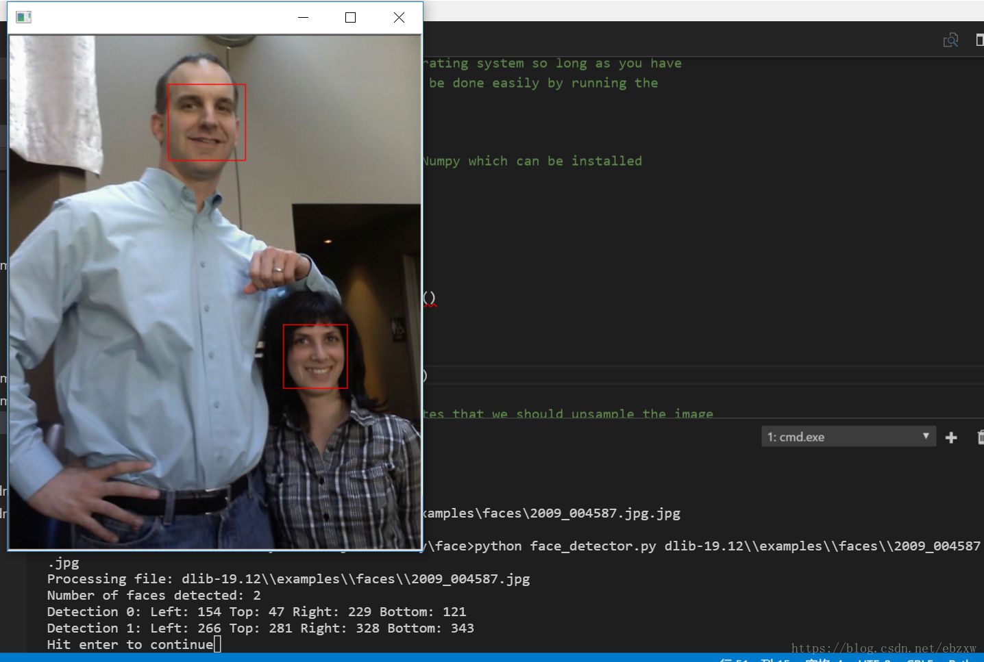 1)python face_detector.py dlib-19.12\\ examples \\faces\\2009_004587.jpg