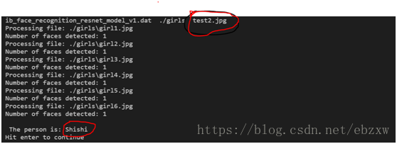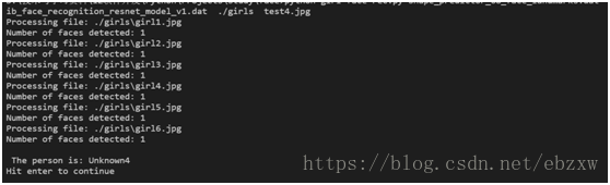 运行结果如下:(识别出test1.jpg 是girls5.jpg ... 前面三个都正确)